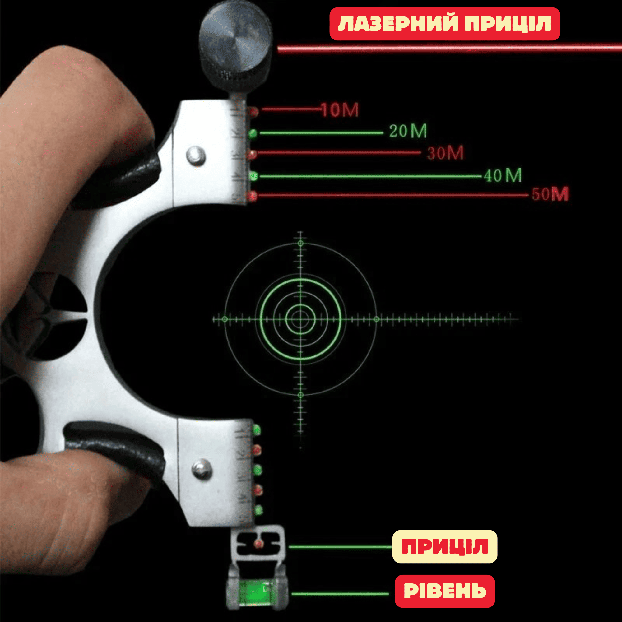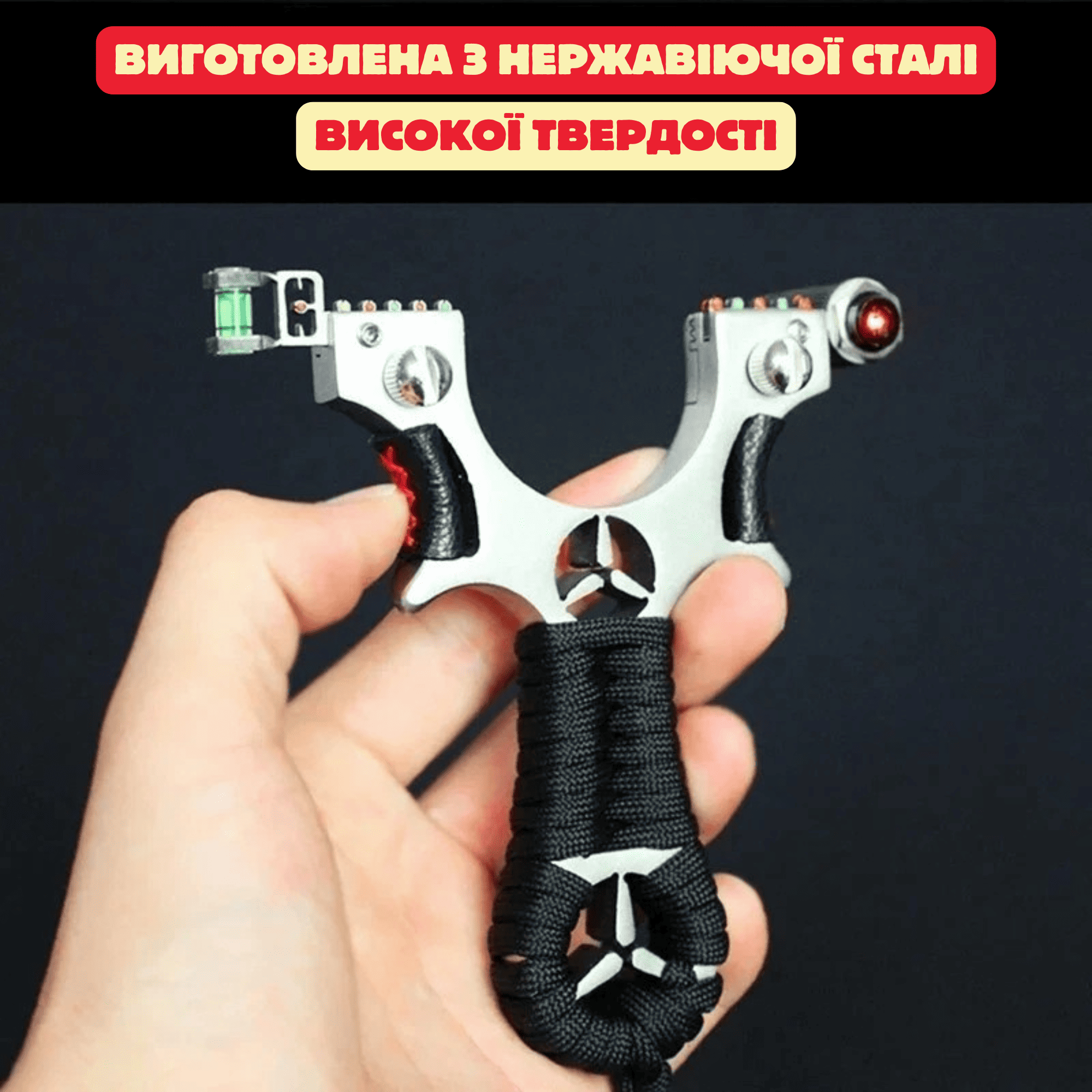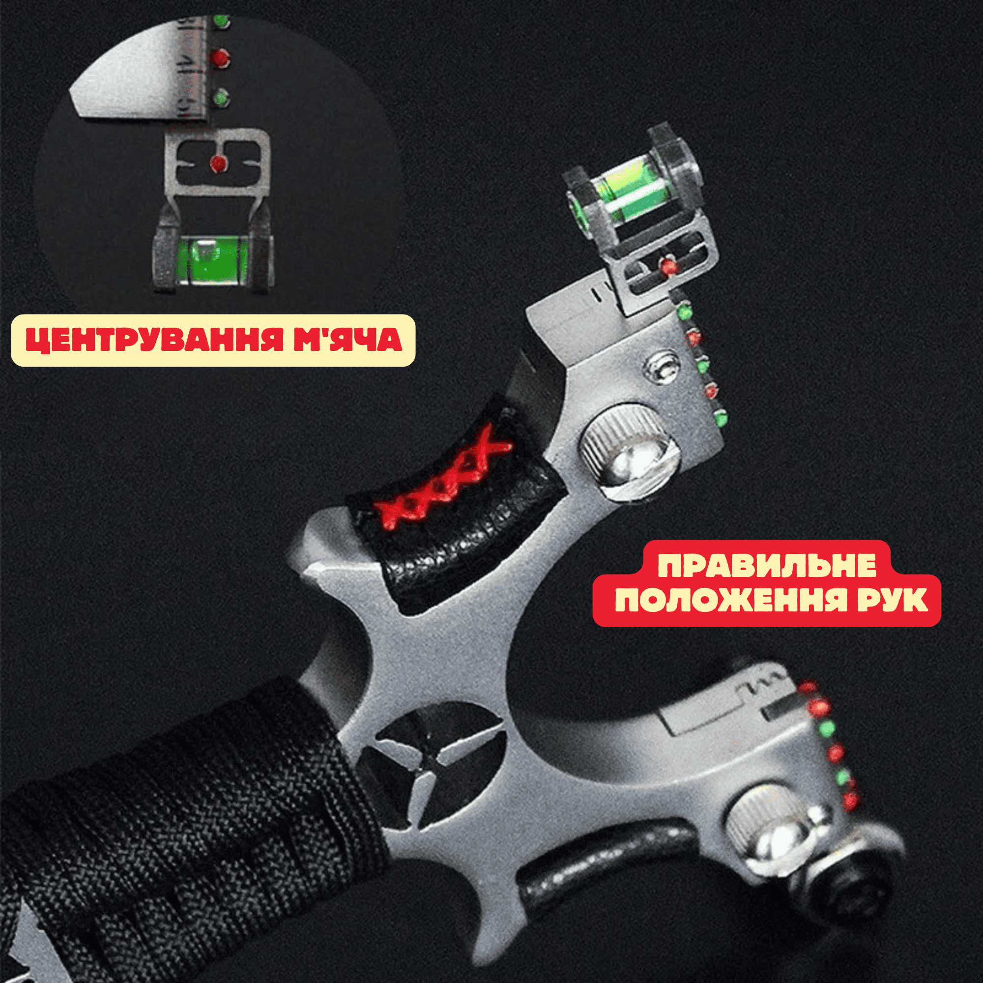 -Нічний приціл та водяний рівень дозволяють використовувати рогатку в будь-яких умовах.